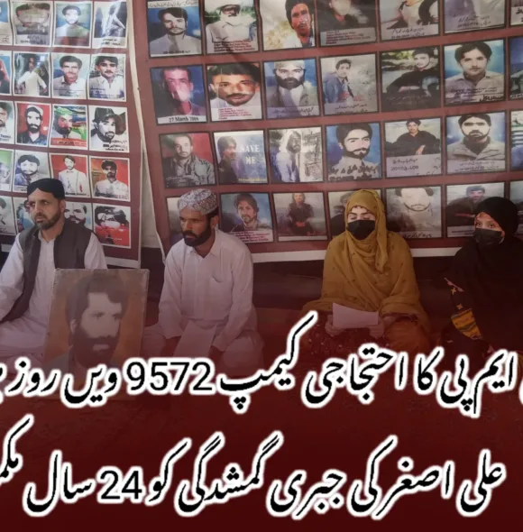 اتوار کے روز کوئٹہ میں جبری لاپتہ جہانزیب بلوچ کی جبری گمشدگی کے خلاف انکے لواحقین کے جانب سے احتجاجی