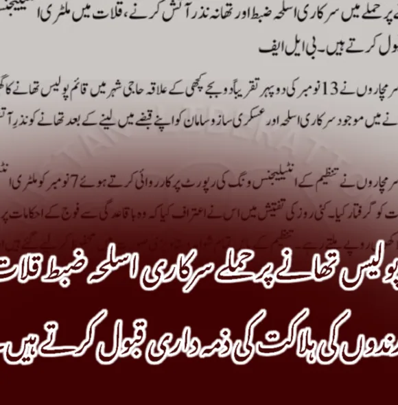 پنجگور حملے میں قابض پاکستانی فوج کے چار اہلکار ہلاک – بلوچ لبریشن آرمی بلوچ لبریشن آرمی کے ترجمان جیئند بلوچ نے میڈیا کو جاری بیان میں کہا کہ ہمارے سرمچاروں نے پنجگور میں قابض