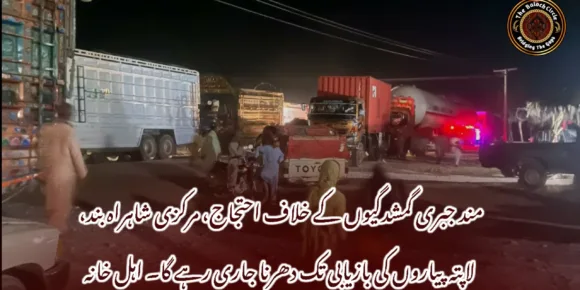 ملیر صادق بلوچ کی جبری گمشدگی کے خلاف اہلِ خانہ کا احتجاج، سڑک بلاک ملیر کے علاقے کالا بورڈ کی مرکزی سڑک کو 26 سالہ میڈیا کے طالب علم صادق بلوچ کی جبری گمشدگی کے