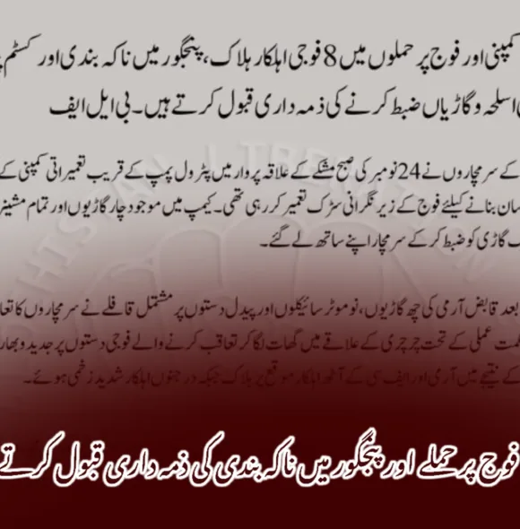 مند دشت فوج پر بم حملے اور نگرانی کیمرے کو تباہ کرنے کی ذمہ داری قبول کرتے ہیں۔ بی ایل ایف