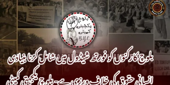 چھے ماہ سے زائد قید گلزادی بلوچ کو مفرور قرار دینا انصاف اور قانون دونوں کی تضہیک ہے۔بلوچ یکجہتی کمیٹی بلوچ یکجہتی کمیٹی: رہنما ڈاکٹر ماہرنگ بلوچ، بیبرگ بلوچ، شاجی بلوچ، گلزادی بلوچ، بیبو