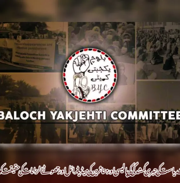 بلوچ یکجہتی کمیٹی (BYC) اور ڈاکٹر صبیحہ بلوچ اور بلوچ یکجہتی کمیٹی کے خلاف ریاستی پروپیگنڈے کی شدید مذمت کرتے ہیں۔ دی بلوچ سرکل