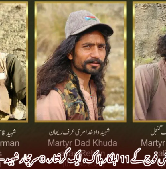 قلات مختلف علاقوں میں پاکستانی فورسز پر حملوں میں 11 اہلکار ہلاک اور 1 زخمی کیا۔ بی ایل اے