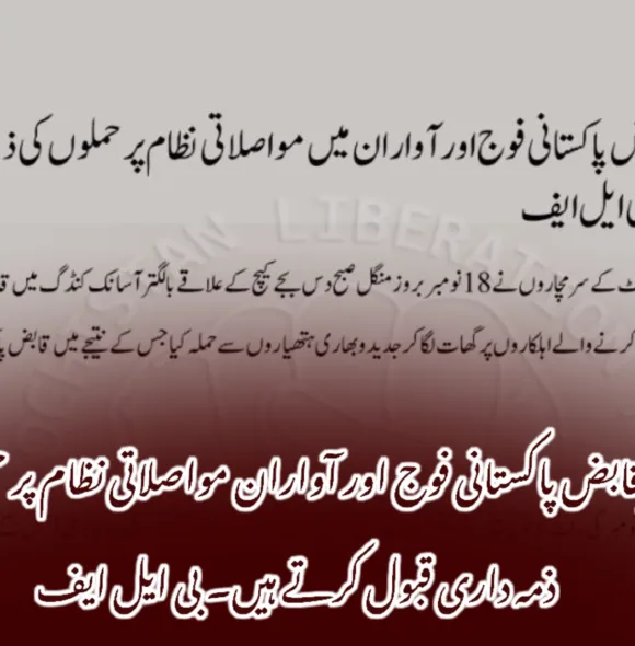 قلات پنجگور قابض پاکستانی فوج کے 7 اہلکار ہلاک – بلوچ لبریشن آرمی بلوچ لبریشن آرمی: ترجمان جیئند بلوچ نے میڈیا کو جاری بیان میں کہا ہے کہ سرمچاروں نے قلات اور پنجگور میں تین